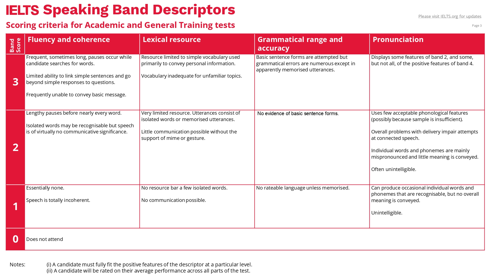 Below is the public version of the IELTS Speaking parameter. Its calculation is similar to writing. All 4 parameters are judged on band 9 independently and then divided by 4 to calculate your overall 7 speaking band score.